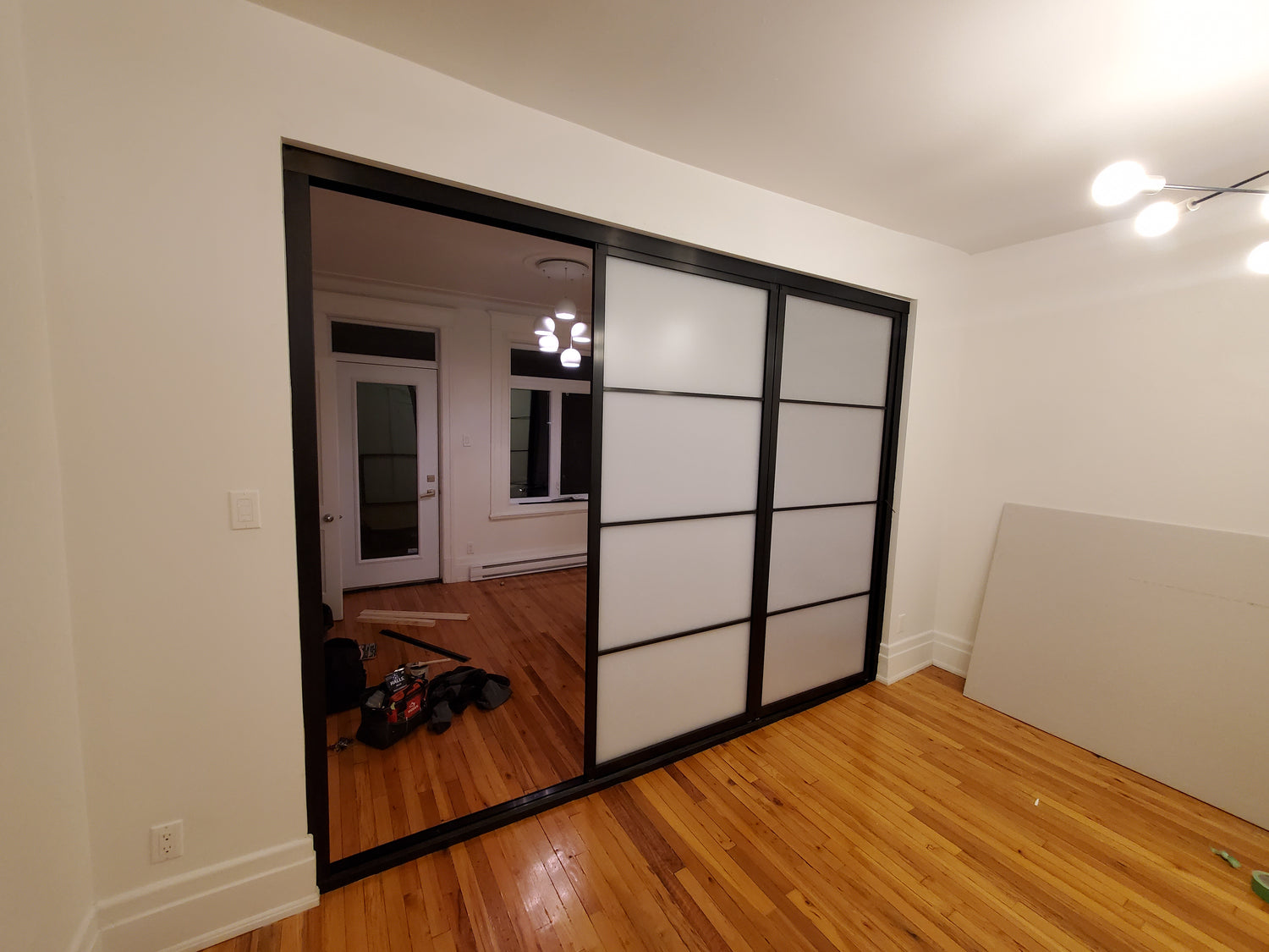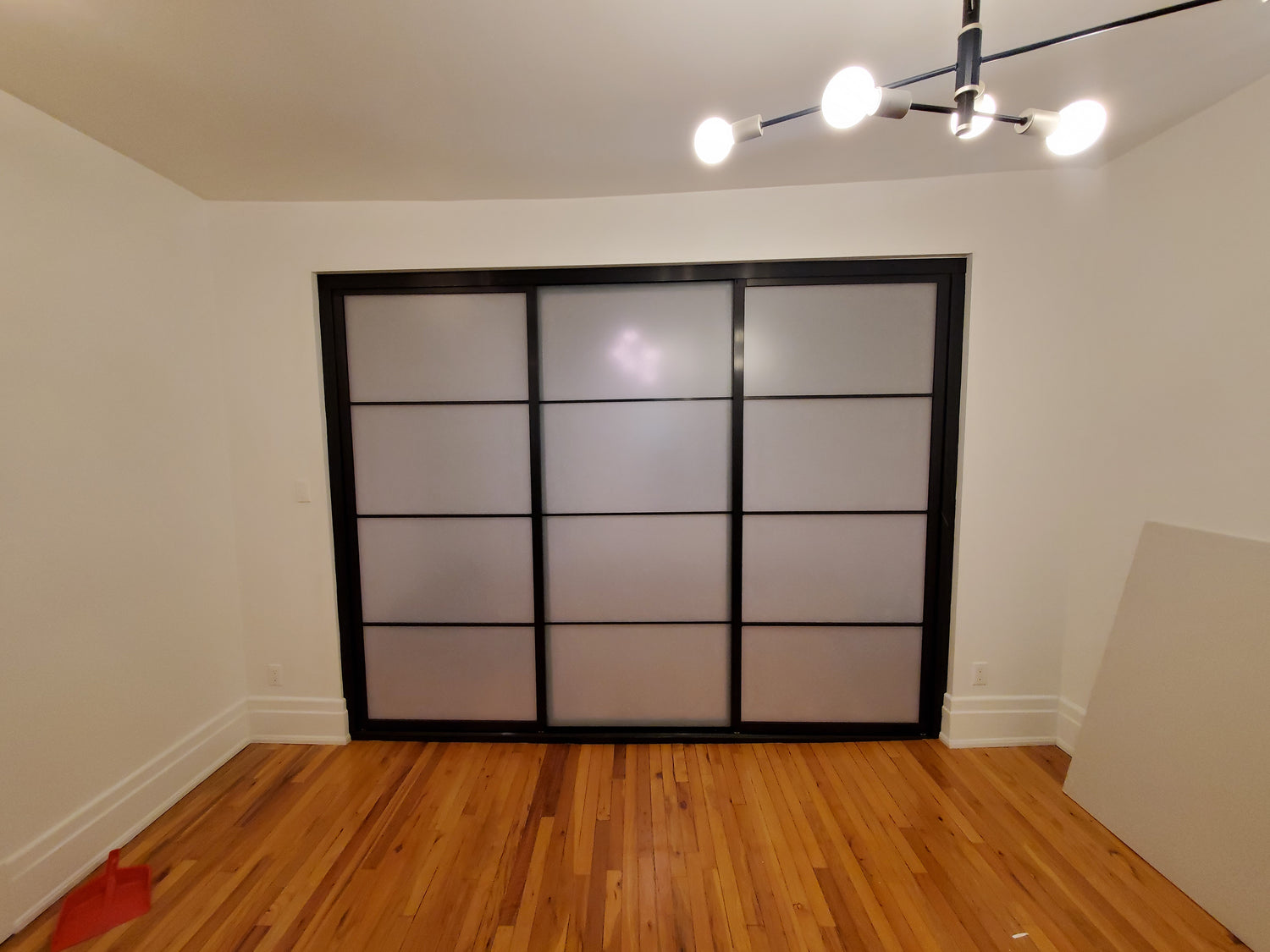 Nov 2024: Installed a 3-panel IKEA SKYTTA sliding door system in a high-end apartment in Verdun, Montreal, QC. Custom riser board, and trim were needed to account for a 70+ year old building.